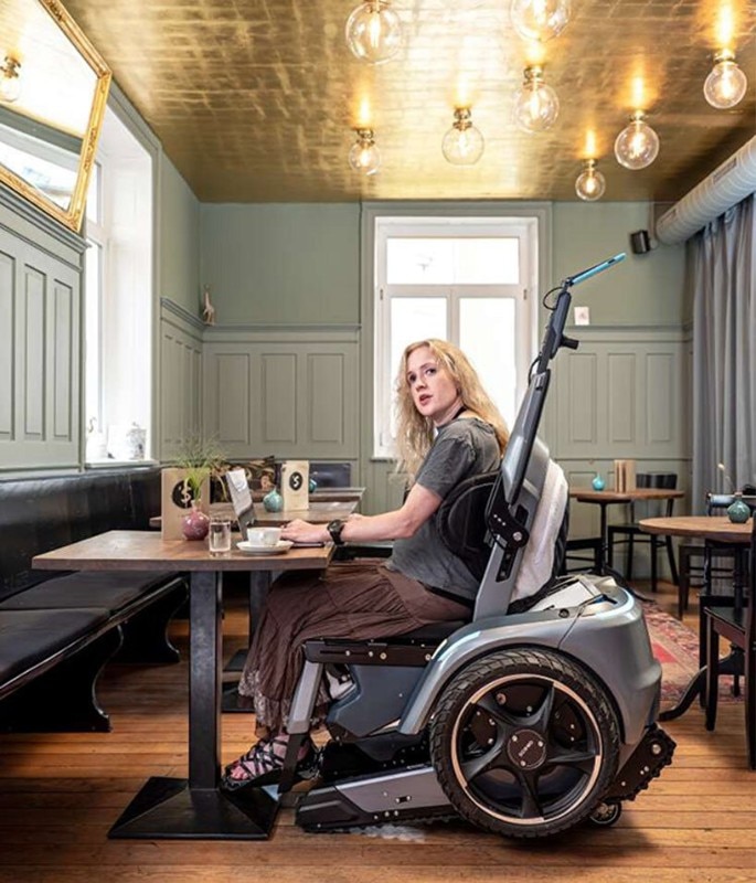 La startup svizzera Scewo ha sviluppato una nuova sedia a rotelle auto-bilanciante che affronta l’accessibilità urbana dal punto di vista dell’utente. Si chiama BRO, e nonostante il nome deplorevole, è una piccola meraviglia della tecnologia che ridefinisce ciò che una sedia a rotelle può fare. Le ruote principali sono auto-bilancianti e permettono all’utente di mantenere sempre una posizione corretta durante la guida. Una terza ruota nella parte posteriore e due cingoli sono ciò che distingue la BRO da dispositivi simili. Permettono agli utenti di guidare su terreni irregolari e accidentati con facilità, e, soprattutto, permettono di salire una rampa di scale in modo autonomo. La sedia può anche sollevarsi da sola, grazie allo stesso meccanismo utilizzato per salire le scale, permettendo all’utente di avere una conversazione faccia a faccia con altre persone, o di raggiungere uno scaffale più alto in un supermercato.