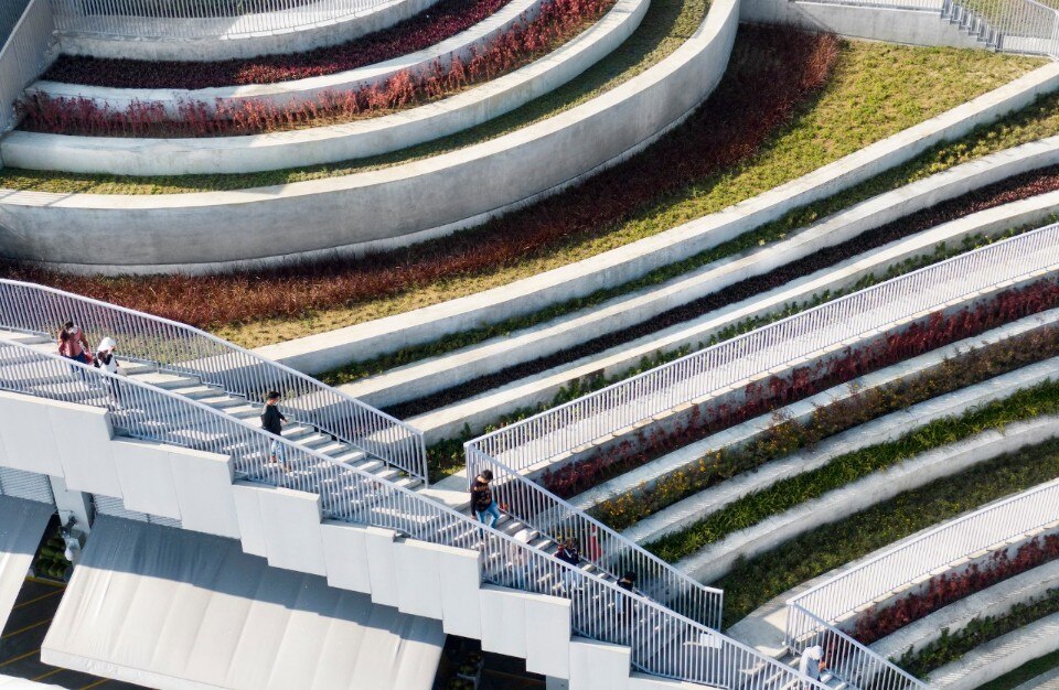 MVRDV ha recentemente completato la costruzione di un nuovo mercato all’ingrosso di frutta e verdura a Tainan, regione sud-occidentale dell’isola di Taiwan. Nella progettazione lo studio olandese tenta una procedura di reinvenzione della tipologia del mercato all’ingrosso – canonicamente ospitata in semplici capannoni metallici – e lo trasforma in un mix di mercato e spazio verde pubblico. Pensato quindi anche come un’importante progetto di incontro sociale, l’architettura non solo funge da importante snodo per la catena di approvvigionamento alimentare del paese, ma è anche una meta per incontrarsi, e ammirare il paesaggio circostante dal tetto accessibile dell’edificio.