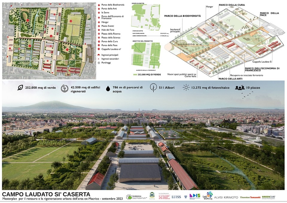 Lo studio Alvisi Kirimoto ha presentato lo studio di fattibilità per il restauro dell’area Ex-Macrico di Caserta, progetto nato dalla volontà della Curia di Caserta – proprietaria del sito – di attivare un processo di sviluppo urbano sostenibile, grazie alla collaborazione fra attori pubblici, economici, sociali, scientifici e civici.