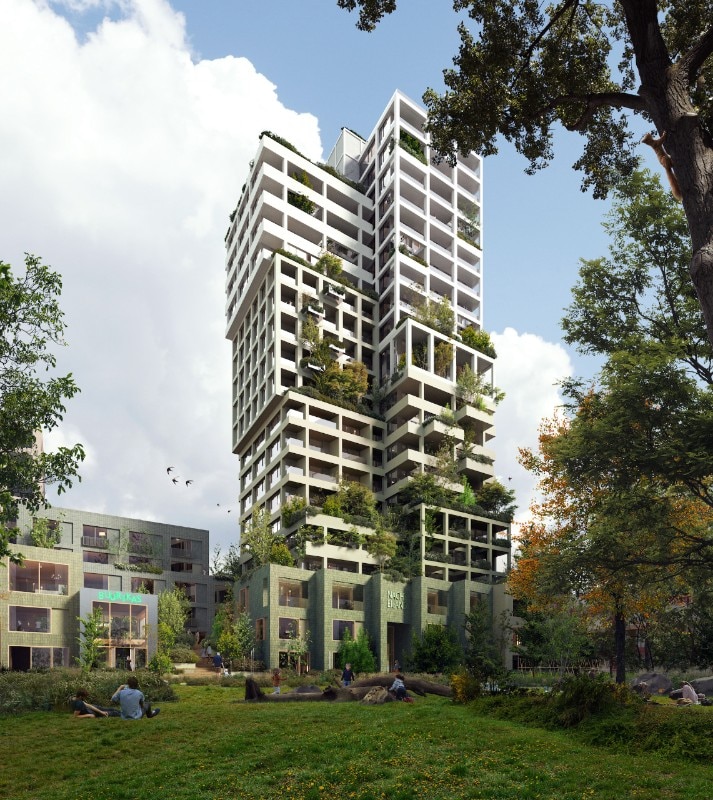 “Questo progetto è la dimostrazione che, per affrontare la crisi abitativa, la progettazione sostenibile può essere al centro del progetto stesso”, afferma Jacob van Rijs, socio fondatore di Mvrdv. “Essendo uno dei progetti più visibili all’interno del nuovo quartiere, siamo entusiasti di stabilire un punto di riferimento per ciò che può essere possibile in una comunità in cui il verde e la sostenibilità sono i principi centrali”.