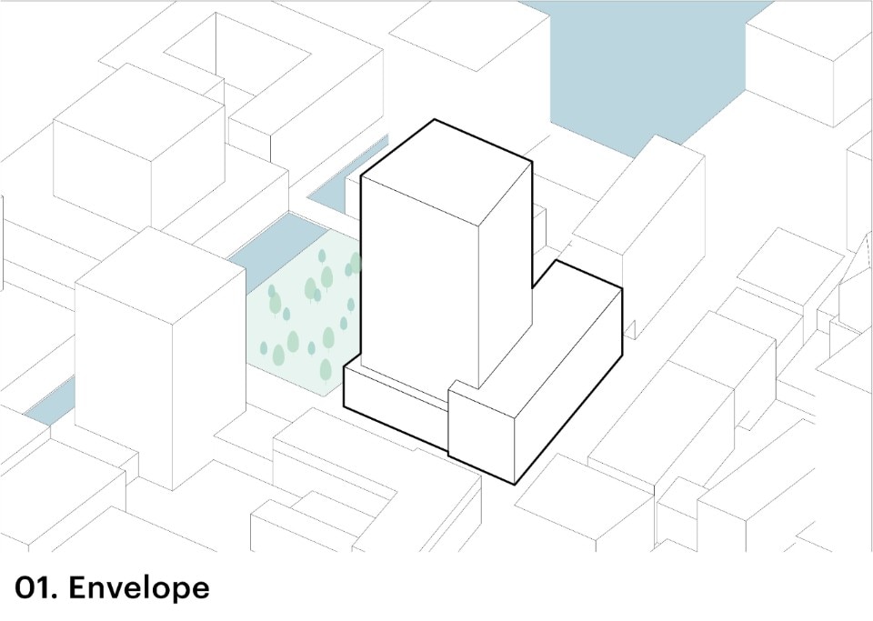 Gli edifici alti sono spesso difficili da rendere neutrali dal punto di vista energetico a causa della porzione di superficie relativamente piccola sul tetto per i pannelli solari. Tuttavia, proprio grazie agli accorgimenti volumetrici, il fotovoltaico integrato nell’edificio compensa ampiamente la differenza.
