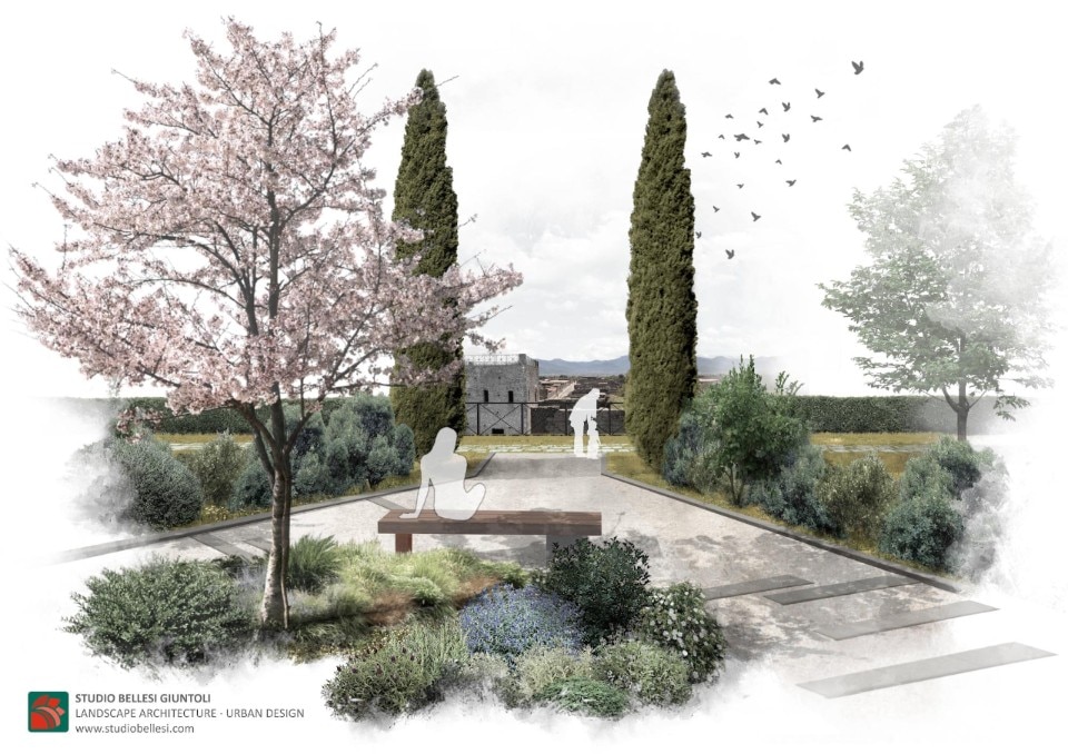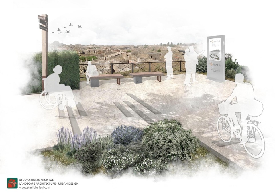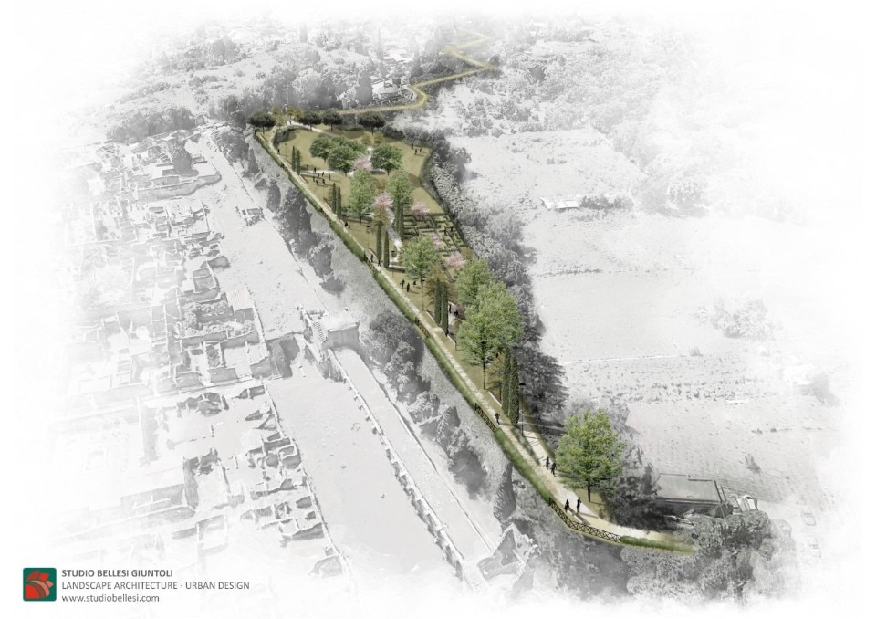 Con un intervento promosso dal Ministero della Cultura e il Parco Archeologico di Pompei, lo Studio Bellesi Giuntoli – studio fiorentino fondato da Alberto Giuntoli e Silvia Bellesi, composto da un team multidisciplinare di architetti, paesaggisti e agronomi – ha presentato la riqualificazione di un percorso paesaggistico extra moenia che, con circa 4 km di sviluppo lineare, percorre il sito archeologico campano celebre nel mondo. Il cantiere sarà cofinanziato da fondi PNRR Ministero della Cultura, con un impegno complessivo di circa 8.000.000 € di cui 3.400.000 € destinati alla realizzazione del primo lotto attualmente in corso.