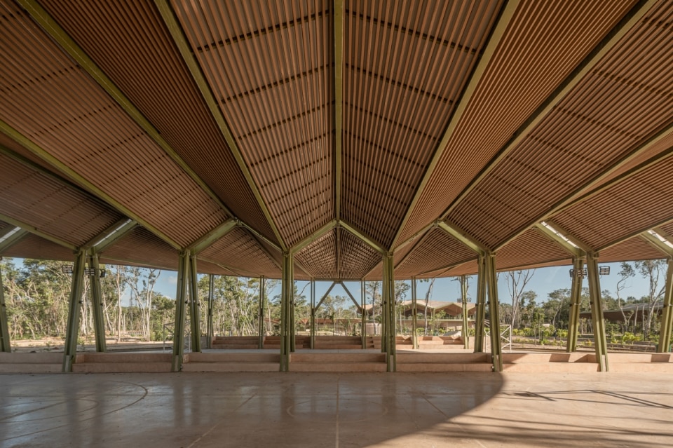 Il masterplan prevede una serie di spazi pubblici: un’arena da mille posti per eventi sportivi e musicali, un padiglione polifunzionale, campi da basket coperti, skatepark, negozi, giochi per bambini, attrezzature per il fitness e una piazza civica collocata all’ingresso. Quest’ultima è definita dalla presenza di undici ceiba, alberi simbolici della tradizione mesoamericana.