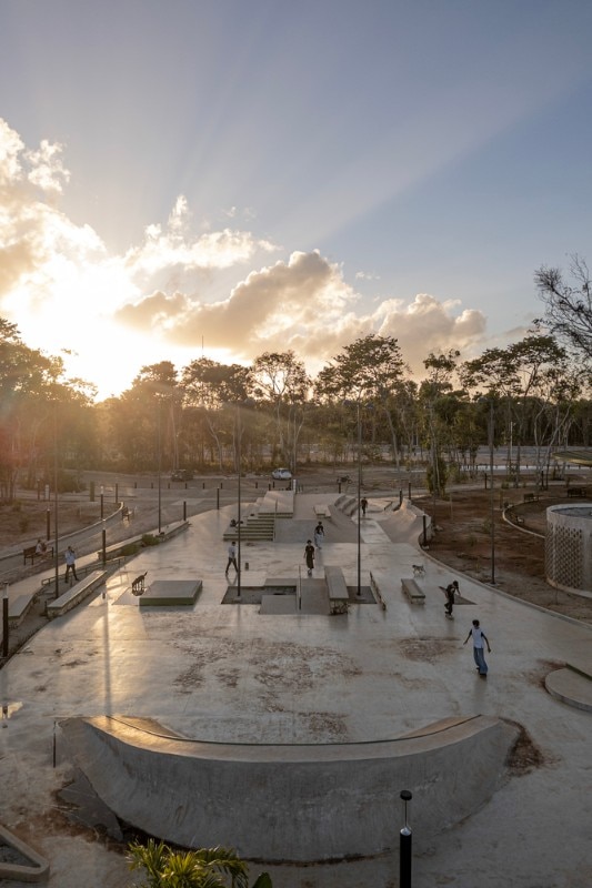 Dopo il mercato locale di Yucatán, Aidia Studio firma un nuovo intervento pubblico nella regione sud-orientale del Messico. A Chetumal, nei pressi del confine con il Belize, lo studio è stato incaricato di trasformare un’area di dieci ettari destinata alla fiera annuale in un parco urbano fruibile durante tutto l’anno. L’iniziativa, finanziata dal governo, risponde alla crescente importanza della manifestazione locale, oggi un evento che include concerti, giostre e mercatini artigianali.