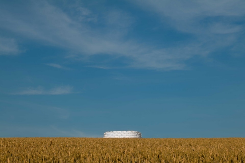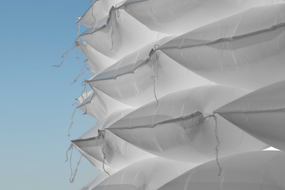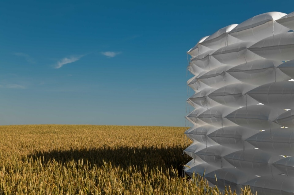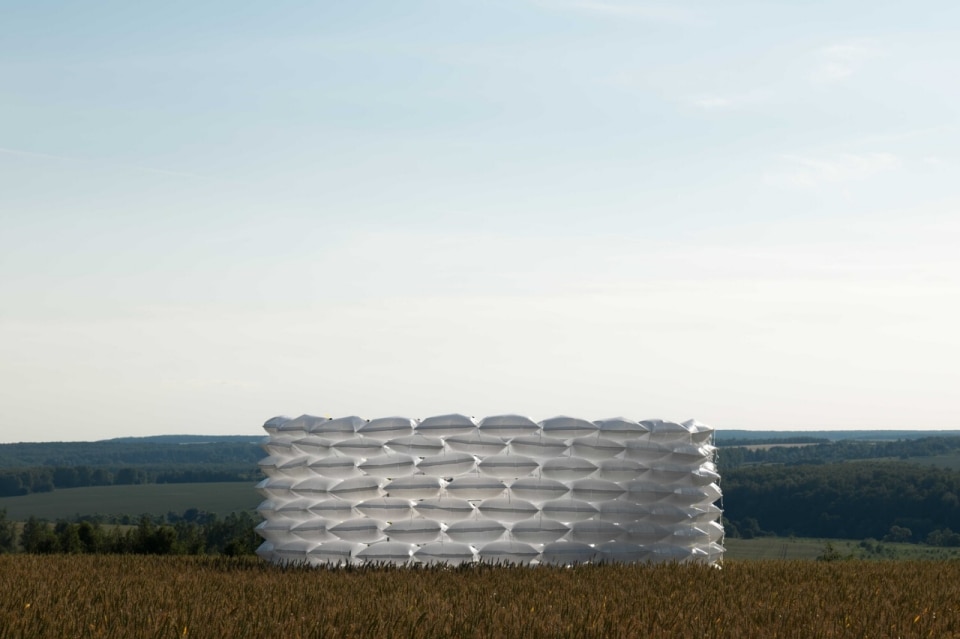 SoftPower è un’installazione di land art dell’artista Gregory Orekhov che riprende la forma e la disposizione dei sacchi di sabbia, oggetti comunemente associati a scenari di conflitto e a contesti di emergenza. Nella loro funzione tradizionale, i sacchi di sabbia agiscono come barriere di protezione e difesa. In questo lavoro, la sagoma familiare viene mantenuta, ma le qualità materiali sono trasformate: al posto della sabbia c’è l’aria, e il peso funzionale è sostituito dalla leggerezza.