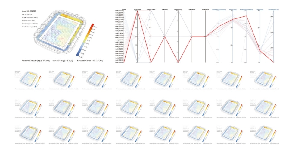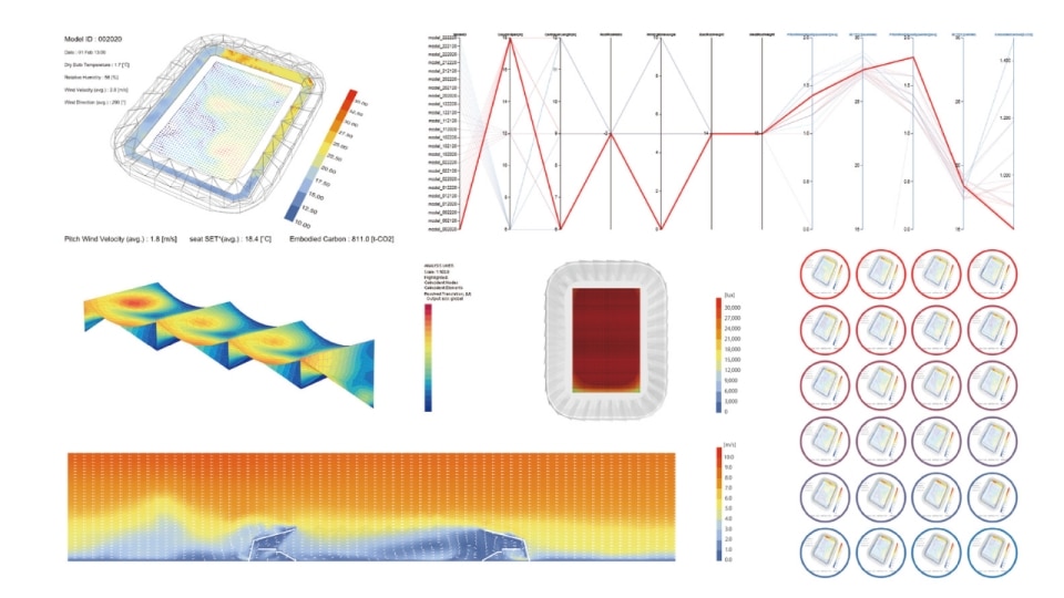 Le strategie ambientali si adattano al clima della regione, caratterizzato da forti escursioni termiche: le geometrie delle coperture schermano dal sole estivo e dai venti invernali, canalizzano le brezze verso le gradinate e integrano sistemi di raccolta e riuso delle acque piovane. In inverno, la neve accumulata può contribuire al raffrescamento estivo, mentre gli impianti a energia rinnovabile mirano all’autosufficienza del complesso. Lo sviluppo è stato affiancato da Arup, una delle più importanti società internazionali di ingegneria, progettazione e consulenza architettonica, che ha condotto simulazioni digitali per testare l’efficacia delle soluzioni.