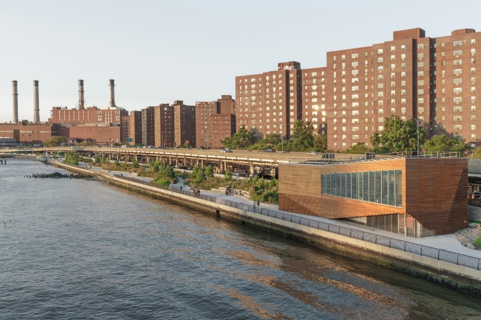 La riapertura delle prime aree di East River Park, nei pressi del ponte di Williamsburg, include nuovi campi sportivi, aree barbecue, un anfiteatro, un campo multifunzionale e due ponti pedonali che collegano il parco al tessuto urbano su Delancey Street e Corlears Hook Park. Il terreno, sollevato di 2,5 metri, ospita 600 nuovi alberi e oltre 21.000 arbusti e perenni, rafforzando la resilienza ecologica del fronte fiume.