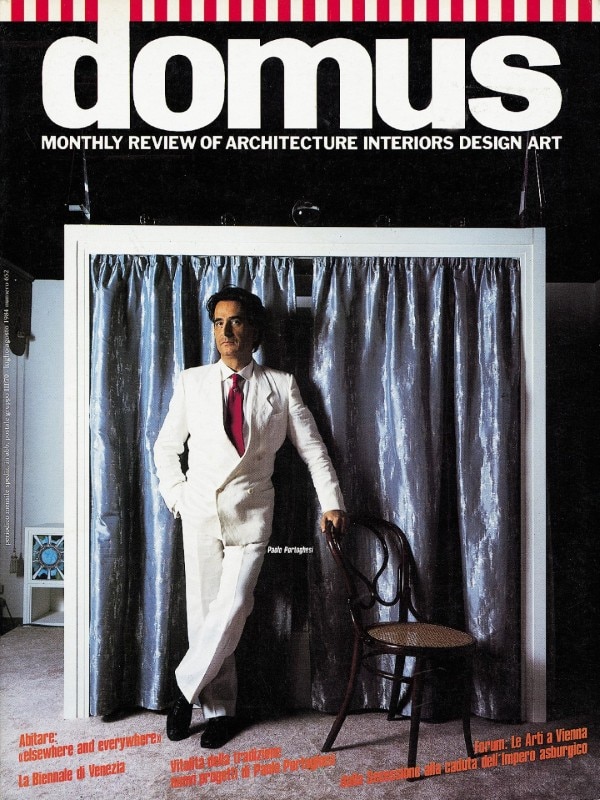 Mussolini's bath-room, interno con chaise-longue "Genni" di Mucchi, portaoggetti "Chichibio" di Levi-Montalcini e Pagano, sedia-scagno "Follia" e poltrona "Benita" di Terragni per Zanotta