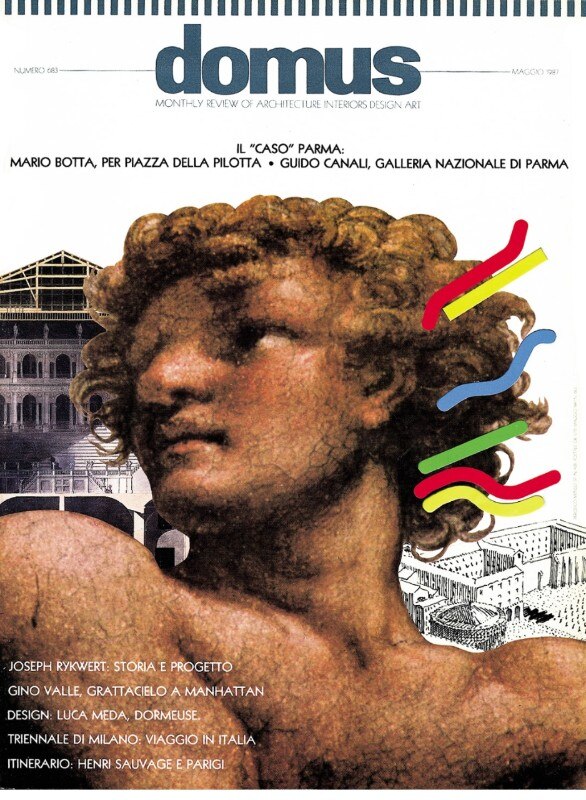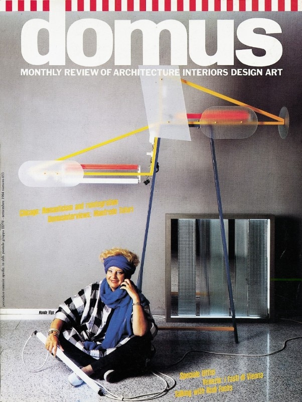 Elogio della stoffa, interno con lampade: "Callimaco" di Sottsass per Artemide, "Pap Stehlampe" di Pap per Tecnolumen, "Segno 1" di Gregotti Associati per Fontana Arte