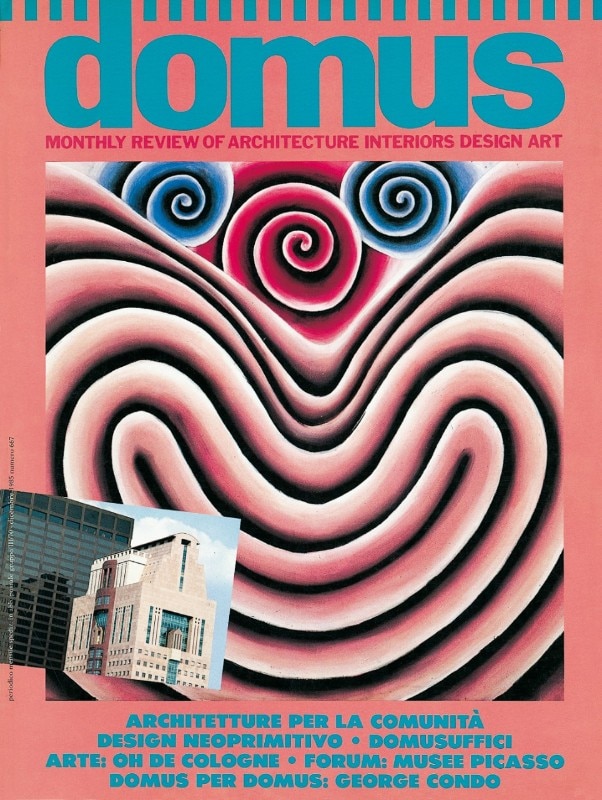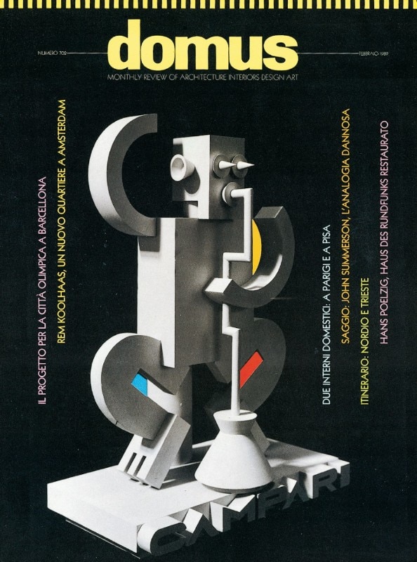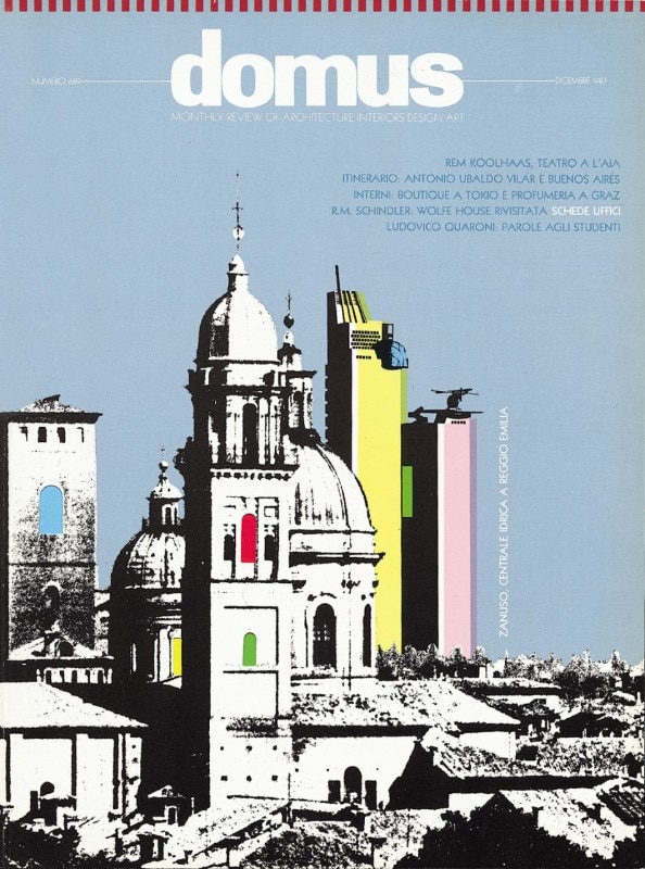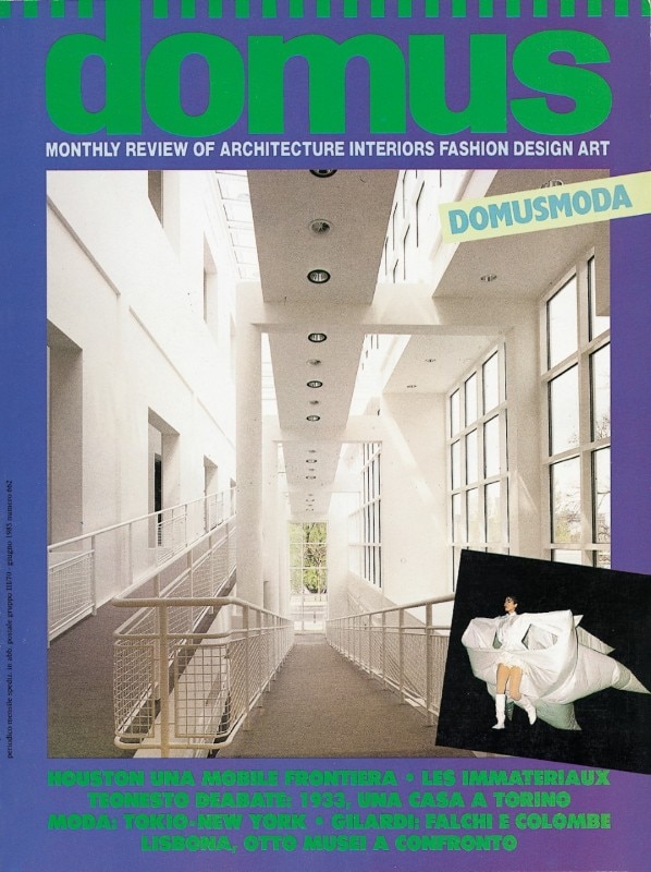 La casa é la spia delle azioni segrete, atrio dell'ampliamento degli uffici Editoriale Domus a Rozzano con scrivania "Quark" di Castiglioni e Ferrari per BBB Bonacina e Computer M20 ST Olivetti