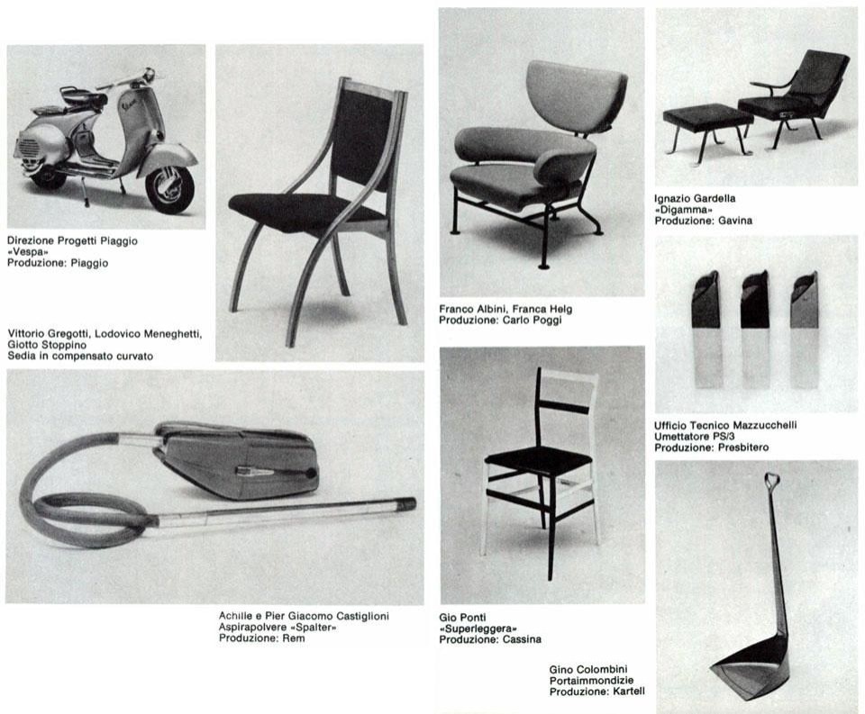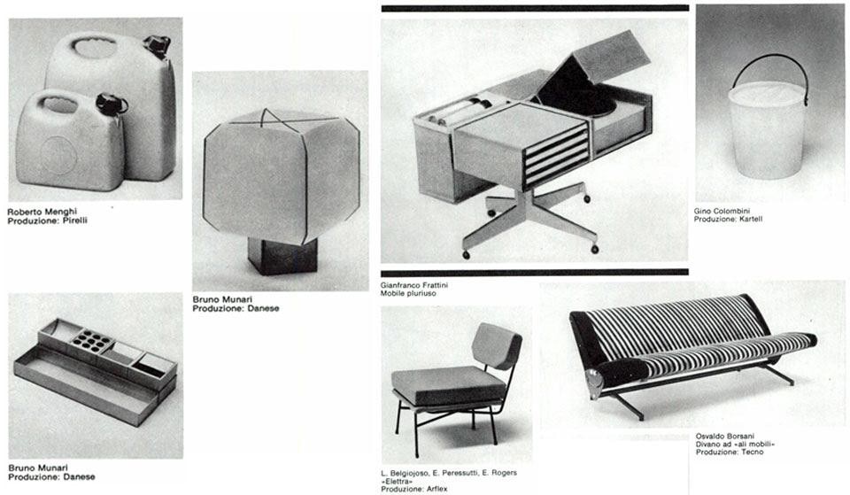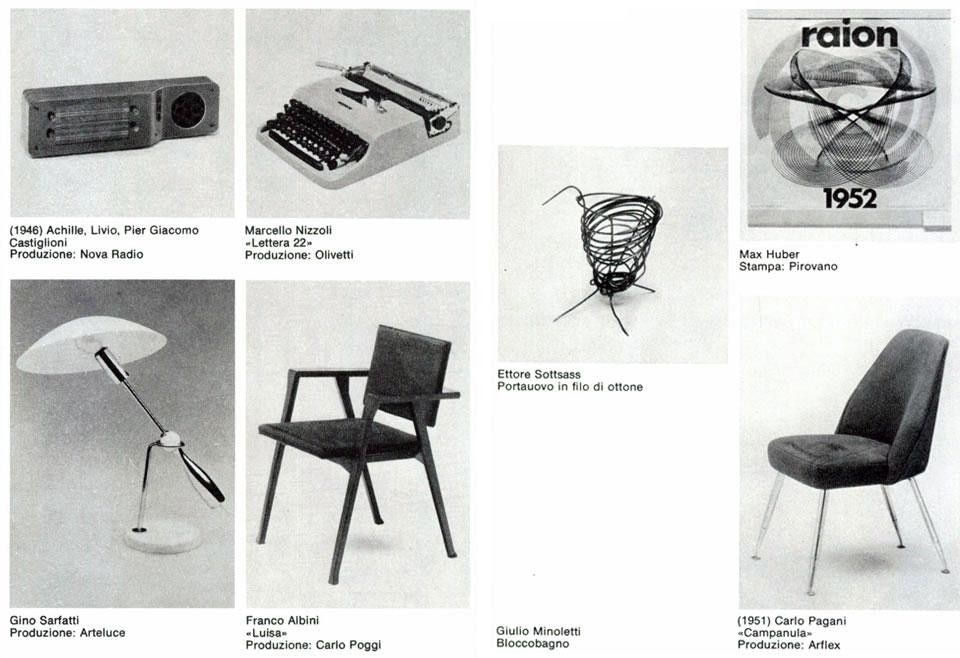 È sufficiente, per questo, citare alcuni nomi come: Gio Ponti, Ignazio Gardella, Vittoriano Viganò, Carlo De Carli, i fratelli Castiglioni, Ettore Sottsass, Bruno Munari ... per riconoscere la 'qualità' e il valore dei prodotti esposti; prodotti che non hanno mai avuto una collocazione storica e che per i non più giovani che hanno visitato la mostra sono facilmente riferibili (forse con un piccolo sforzo) alla vita culturale ricca di fermenti di una Milano postbellica (riviste come Domus, Casabella, Stile Industria, la Triennale di Milano, la fondazione dell'ADI, il Compasso d'oro, l'Olivetti, la Rinascente ecc.). Rimane però difficile immaginare le reazioni dello spettatore che, non avendo vissuto quel periodo, o avendolo vissuto al di fuori di quelle che erano le esperienze dei cosiddetti designer di allora, guarda oggi l'insieme degli oggetti esposti nella mostra e non riesce a collegarli alla vita politica, culturale, letteraria e filosofica di quei tempi. Ma questi spettatori non colgono soprattutto uno degli aspetti più macroscopici che caratterizzò il lavoro di coloro che progettarono oggetti per l'industria: il rapporto con l'architettura. Non va dimenticato, infatti, che tutti i designer di allora erano anche e soprattutto architetti, che come Ponti, Viganò, Gardella e Caccia Dominioni svilupparono dei 'modelli' architettonici e delle linee di metodo progettuale che poi trasferirono in scala ridotta nella progettazione di oggetti.