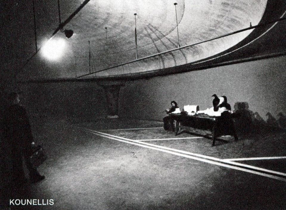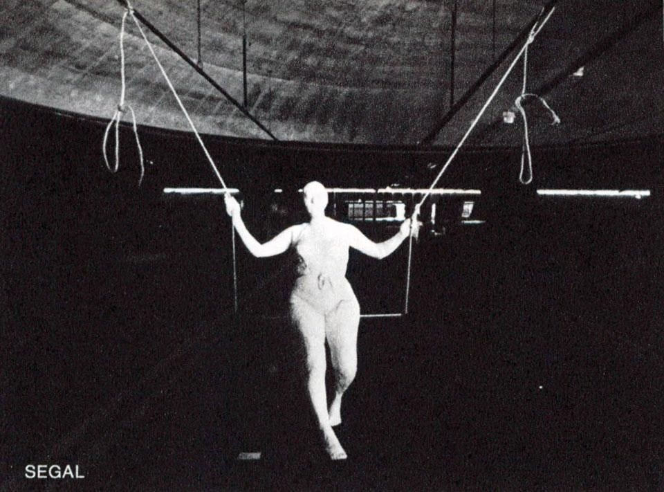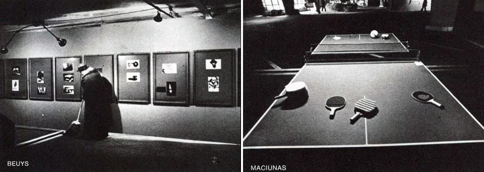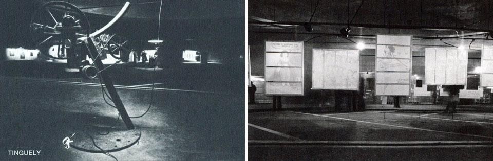 Il pezzo di Hans Haacke, Documentazione- Ricerca, che fu bandito dal Guggenheim, qui, nel parcheggio, lo si tollera; la verdura marcia in Insalata di Vostell, è un insulto per tutti; gli schermi a rete di Sartogo accentuano la catacomba e i suoi aspetti peggiori: tutto è freddo, umido, nebbioso. Non c'è un posto dove ci si possa sedere, Non c'è un bar. Grandi spazi vuoti. Un freddo pavimento di cemento che stanca i piedi. Si pensa a come sarebbe bello poter girare in macchina dentro la mostra. Il primo museo-drive in del mondo. Oppure, girarvi in bicicletta, almeno.