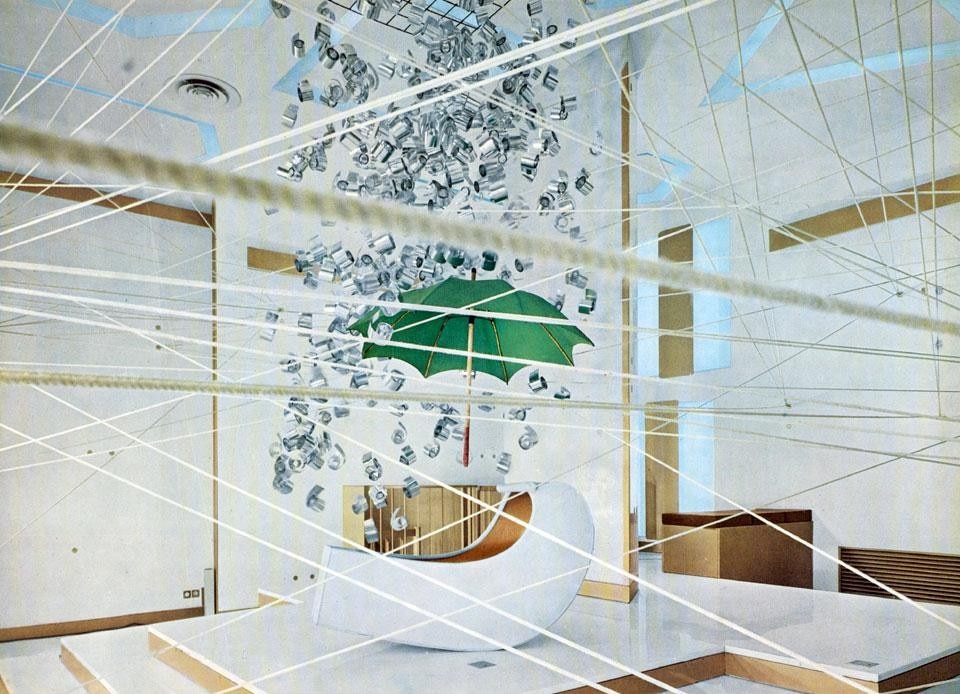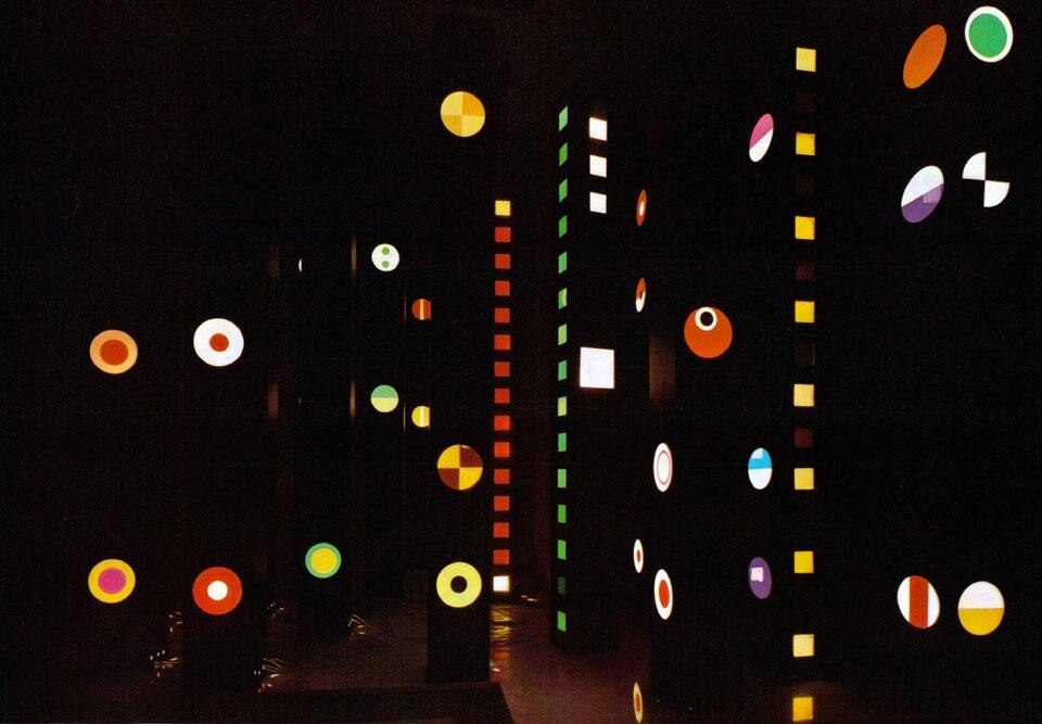 Ettore Sottsass è invece architetto, designer e pittore: era naturale che la sua Espressione, […] dovesse tendere alla dinamica ambientale, con strutture in movimento di ritmo, luci, colori in uno spazio attivo: un congegno di suggestioni dentro un ambiente inventato con estrosa fantasia e, soprattutto, con analogie musicali sincopate e lucide mentre evocano allusivamente la meraviglia e l'ossessione, sia pure divertita, della vita di oggi. È stata una delle migliori manifestazioni nella Sala dell'Ideal Standard.