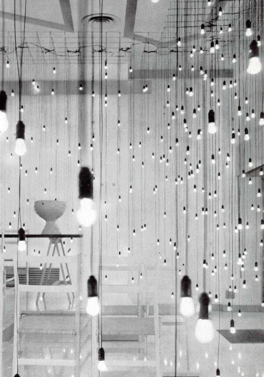 Si è trattato di un'esperienza vivissima, con tecnica e materiali industriali, di un pioniere dell'opera moltiplicata. Gli Effetti di luce e spazi di Achille e Pier Giacomo Castiglioni hanno mosso di più l'ambiente durante la terza manifestazione: nella suggestione di fili sospesi, lampade, sedie ed altri elementi, tutto lo spazio risultava coinvolto in una dinamica amplificata. […]