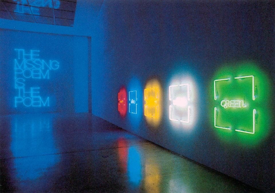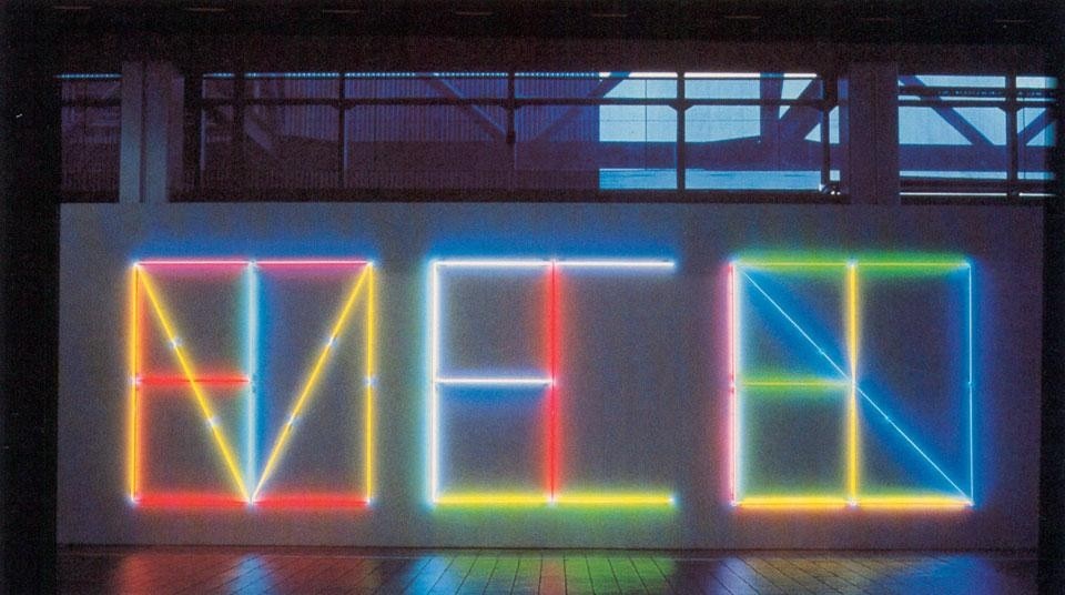 Il simbolo labirintico del Sigillo di Salomone (1992) esposto a Aarhus, sottolinea il percorso semantico del sistema lineare e l'alchimia dei suoi colori primari. Infatti, nelle sue grandi composizioni del 1991, ormai classiche, come Art Light Text (1000 x 300 x 5 cm) o Time Life Line (1000 x 300 x 5 cm), le maiuscole dell'alfabeto vengono frammentate e progettate in sequenza geometrica, fonte di chiarezze luminescenti.