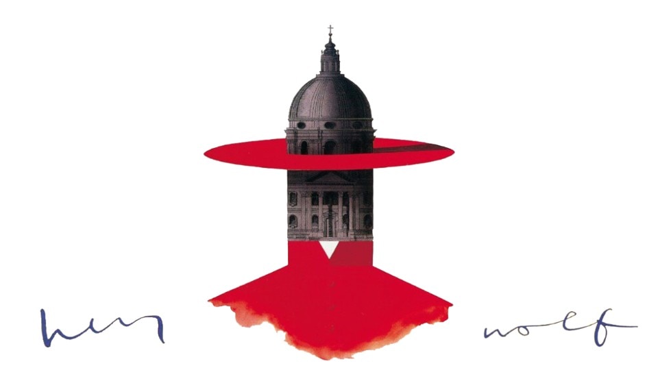 E accanto un’altra splendida immagine, un fotomontaggio grafico. Wolf aveva inserito un disco rosso lungo il diametro della cupola di San Pietro. Alla base un semplice cenno grafico dello stesso colore disegnava spalle e busto, la figura era quella di un prelato. Battezzammo subito il disegno come il “cappello del prete”. Wolf descriveva il progetto come un tributo alla più alta architettura classica di cui l’Italia è simbolo.