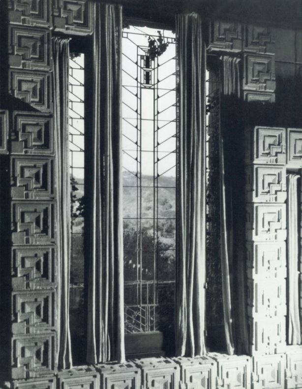 Lloyd Wright, il figlio maggiore di Frank Lloyd Wright che esercitava la professione di architetto nella regione di Los Angeles, stava utilizzando i blocchi di calcestruzzo armati con l’acciaio in certi elementi di una casa che stava costruendo in quel periodo. Questo esempio di Lloyd fu sviluppato da Wright nelle tre case che costruì in seguito – quella per John Storer, quella per Samuel Freeman e quella per Charles Ennis – in un sistema a rinforzo continuo.