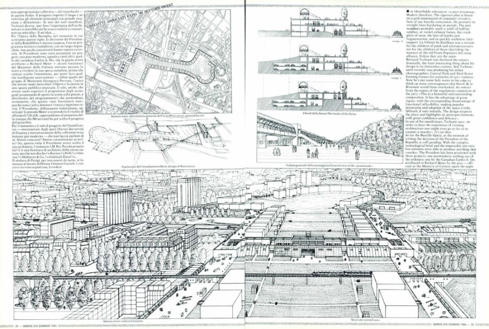 Il 1981 in Francia, con l’elezione di François Mitterrand alla presidenza della repubblica, segna l’instaurazione del primo governo socialista eletto nel mondo destinato a compiersi pienamente in regime democratico. Il segno che la nuova guida vorrà lasciare sulla Capitale si concentra su una galassia di grandi opere pubbliche dal forte valore urbano, presto note come Grands Projets, che senza partire da nessuna concezione di tabula rasa, andranno a punteggiare il tessuto urbano con i suoi equilibri storici, ridefinendone dialogicamente gli epicentri. Da subito la modalità delle consultations punterà a coinvolgere i nomi all’epoca più in vista del panorama architettonico per la loro associazione ad un’idea di innovazione quando non direttamente di futuribilità. Un progetto di enorme ambizione, che Domus esplorava per la prima volta nel gennaio del 1984, con un ampio approfondimento critico pubblicato sul numero 636.