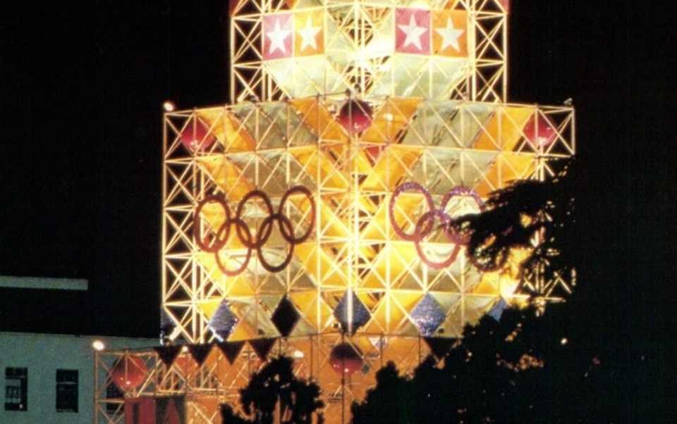 Il tutto attraverso l’impiego di materiali “effimeri”, semplici, oserei dire umili come la carta, il nylon o i tubolari in ferro, dimensionati e proporzionati di volta in volta secondo l’obiettivo da raggiungere, e sempre modellati nelle forme più elementari, immediate e facili da costruire”. L’equipe aveva a disposizione 10 milioni di dollari (vale a dire un cinquantesimo del budget totale, a sua volta equivalente a un ventesimo del budget dei Giochi di Mosca dell’80) da distribuire su un’area di 160 chilometri di raggio.