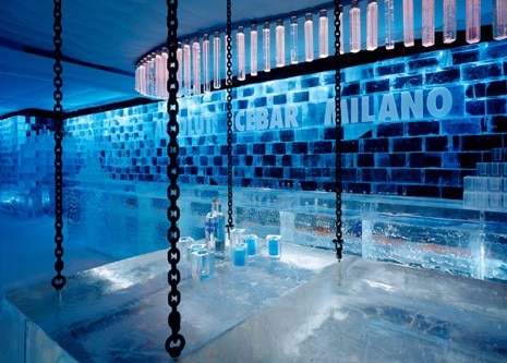 Primo locale del genere nel capoluogo lombardo e secondo nel mondo, sulla scia della moda inaugurata dall’hotel di ghiaccio di Jukkasjarvi, in Svezia, l’Ice Bar richiede una manutenzione costante. Il ghiaccio, facilmente deperibile, arriva infatti direttamente dal fiume svedese Torne e, ogni sei mesi, il bar dovrà praticamente essere rimesso a nuovo. L’iniziativa è di Alessandro Rosso, in compartecipazione con l’Icehotel in Lapponia e Absolut Vodka, che per aggiudicarsi l’appalto ha partecipato a un concorso internazionale, battendo città come Parigi e Londra. E.S.