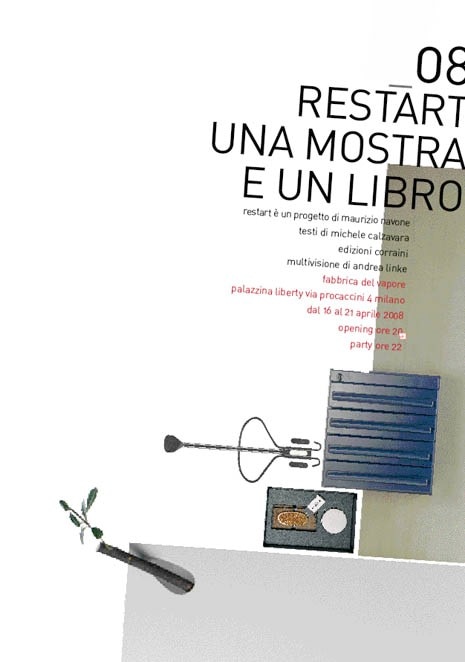 Ci saranno un caleidoscopico tableaux a parete di 12 Scatole della memoria, i 5 stencil seriali del progetto Remaster in dialogo con i maestri, la serie 45 di Ettore Sottsass declinata in cassettiera multiuso e sedia libreria, l'alta artigianalità di Finollo rivisitata e i Legni come riflessione su un possibile progetto con la natura. E ancora il libro Restart (Edizioni Corraini), che ne ripercorre il progetto mettendo a fuoco i processi, le qualità produttive, i retroterra narrativi in dialogo continuo con le nuove merci contemporanee, con i contributi di Carlo Antonelli, Emanuela De Cecco, Beppe Finessi, Roberto Linke, Emilio Renzi.