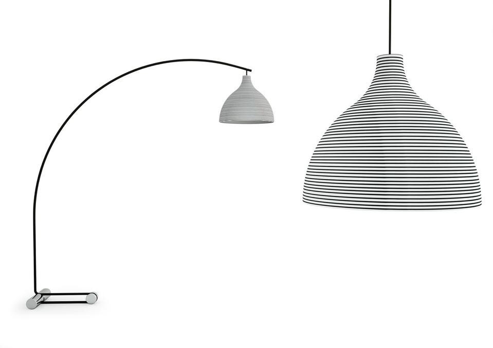 Un diffusore in tessuto non tessuto e fibre di carbonio caratterizza l'innovativa lampada dello studio Basaglia e Rota Nodali per I Tre.