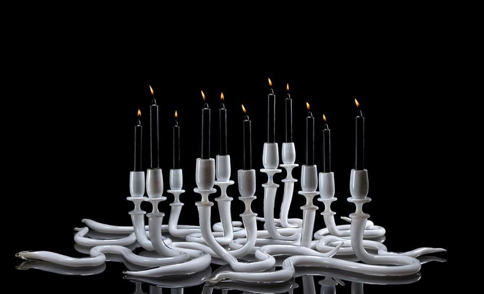 J. Z.: Non voglio essere letterale, non voglio rappresentare la natura, ma credo di essere partito dall'idea che il processo di soffiare il vetro mimi un momento congelato in natura. Il modo in cui si creano le stalattiti e le stalagmiti: si parte da un liquido che poi si solidifica. E' un fenomeno, piuttosto che una forma naturale quella a cui mi ispiro nel mio lavoro. Ha senso dire che è il modo in cui la natura disegna. Ci sono cose in natura che sono più accurate, quasi magiche, come il sapone o le bolle di sapone: i colori e le forme che creano mi sembrano sempre perfette. Lavoro il vetro da vent'anni, so quanto le cose sono difficili da ottenere e in alcuni casi valico i miei confini per riuscire a crearle e ci arrivo attraverso esperimenti, a volte partendo da riferimenti concettuali, come in questo lavoro in cui le candele diventano serpenti. Lavoro su un doppio binario: il fare da un lato e dall'altro processi concettuali e il lavoro risulta dalla combinazione dei due.