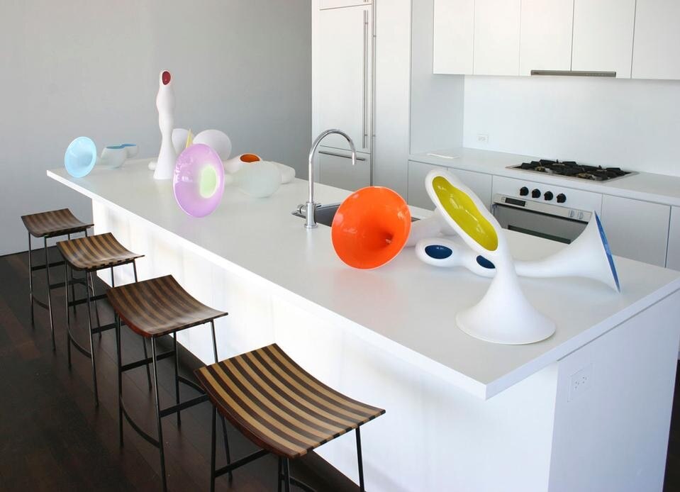 J. Z.: A volte passo attraverso il disegno, mi capita di avere un'idea e fare uno schizzo, ma più spesso disegno direttamente con il vetro, nel mio studio di Brooklyn guardo la forma che si sta creando e reagisco di conseguenza nello svilupparla. Non lavoro a partire da disegni bidimensionali, ma sempre tridimensionali. Per la serie Morphos ad esempio, quello che ho fatto è stato allungare il vetro che quando è caldo è malleabile e si può davvero controllare, e ho lavorato seguendo una semplice linea guida. Come risultato ogni pezzo è diverso dall'altro.