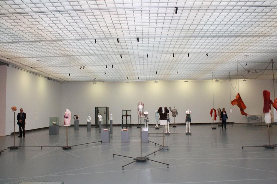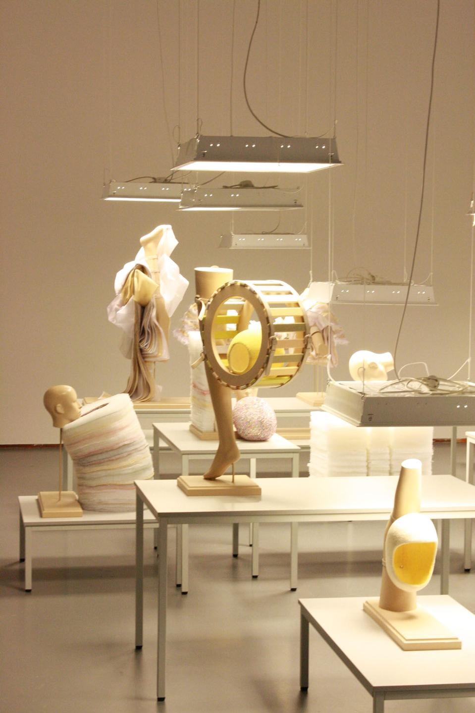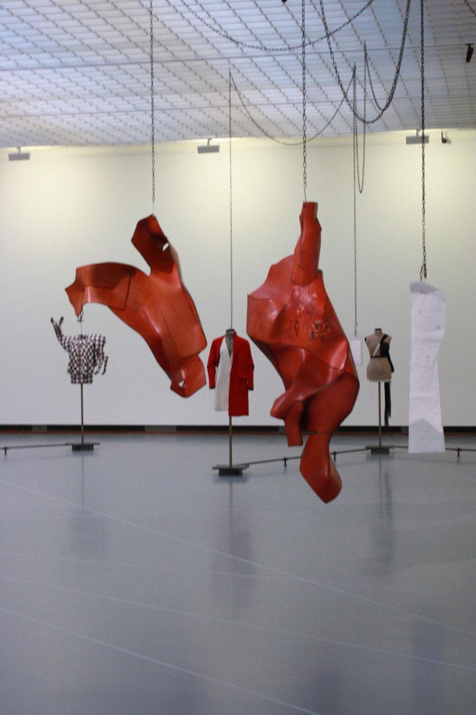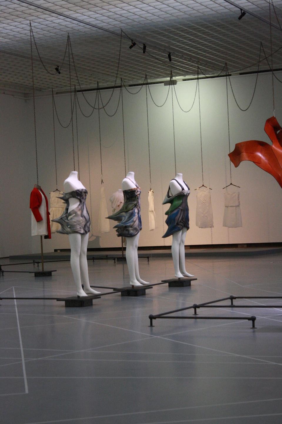 La mostra si situa in un punto interessante all'interno del dibattito curatoriale. Credo che ciò la renda ancora più stranamente contemporanea; ci sono le nuove committenze che parlano di moda, escludendo il mercato, c'è una selezione tratta dall'archivio del museo, che ha una sua storia ventennale, e come curatore, è sempre interessante scegliere, e dunque in qualche modo riconfigurare, un archivio. Questa mostra ha prestiti internazionali straordinari: Cell XIX di Louise Bourgeois, Remote Control Crinoline di Jana Sterback, il soffice cuscino anatomico di Helen Chadwick risalente ai primi anni Settanta. Oggetti che sono stati evocati durante le conversazioni e nelle descrizioni delle nuove committenze; è stato come colmare un vuoto all'interno di un albero genealogico, pur sapendo che non è che una goccia nel mare. I pezzi sono tutti esposti in una sala incolore, su piedistalli incolori, come per sottolineare le qualità scultoree o formali degli oggetti. Le mostre sulla moda sono spesso troppo timorose degli oggetti non mediati, temono la competizione con la passerella. Sono rimasta sconvolta che l'ufficio marketing del museo abbia scelto l'immagine di una passerella per la campagna di stampa: è stato come un cedimento. Judith Clark