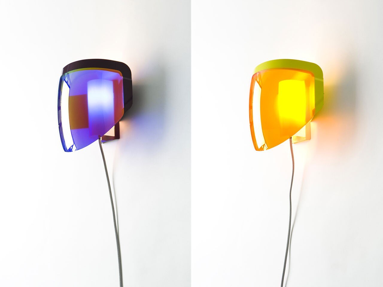 La lampada da parete Moto, progettata da Jean-Baptiste Fastrez, rivisita i codici estetici dei produttori di accessori per moto. Ultra-riflettenti, ieratiche e capaci di produrre numerosi effetti ottici, una volta accesa la lampada diffonde una luce leggermente colorata attraverso la visiera traslucida. La lampada Moto è disponibile in 4 colori. Può essere collegata a una presa di corrente o inserita direttamente in una presa di corrente a muro.