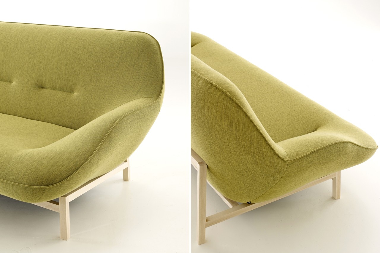 Grazie alla conoscenza dei limiti della produzione in serie e all’ottimizzazione tecnica/materiale, il lavoro sulla forma riesce a raggiungere la sua massima libertà di espressione. La forma del divano Cosse segue naturalmente questa idea di leggerezza. Una forma accogliente dal profilo piacevole, un rivestimento sottile e morbido che, sostenuto da una struttura fine in legno naturale, sembra viaggiare sul pavimento. Il notevole comfort della seduta, ottenuto grazie al sistema di sospensione a cinghie, contribuisce a questa sensazione di comfort e leggerezza.