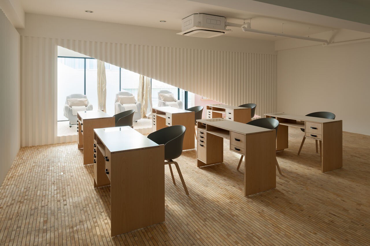 Il designer giapponese Yusuke Seki ha progettato il centro estetico Kolmio+LIM di Osaka utilizzando i toni naturali del legno e il bianco per suggerire l’idea dei diversi colori della pelle, mentre lo spazio rappresenta in maniera simbolica la colorazione delle unghie.