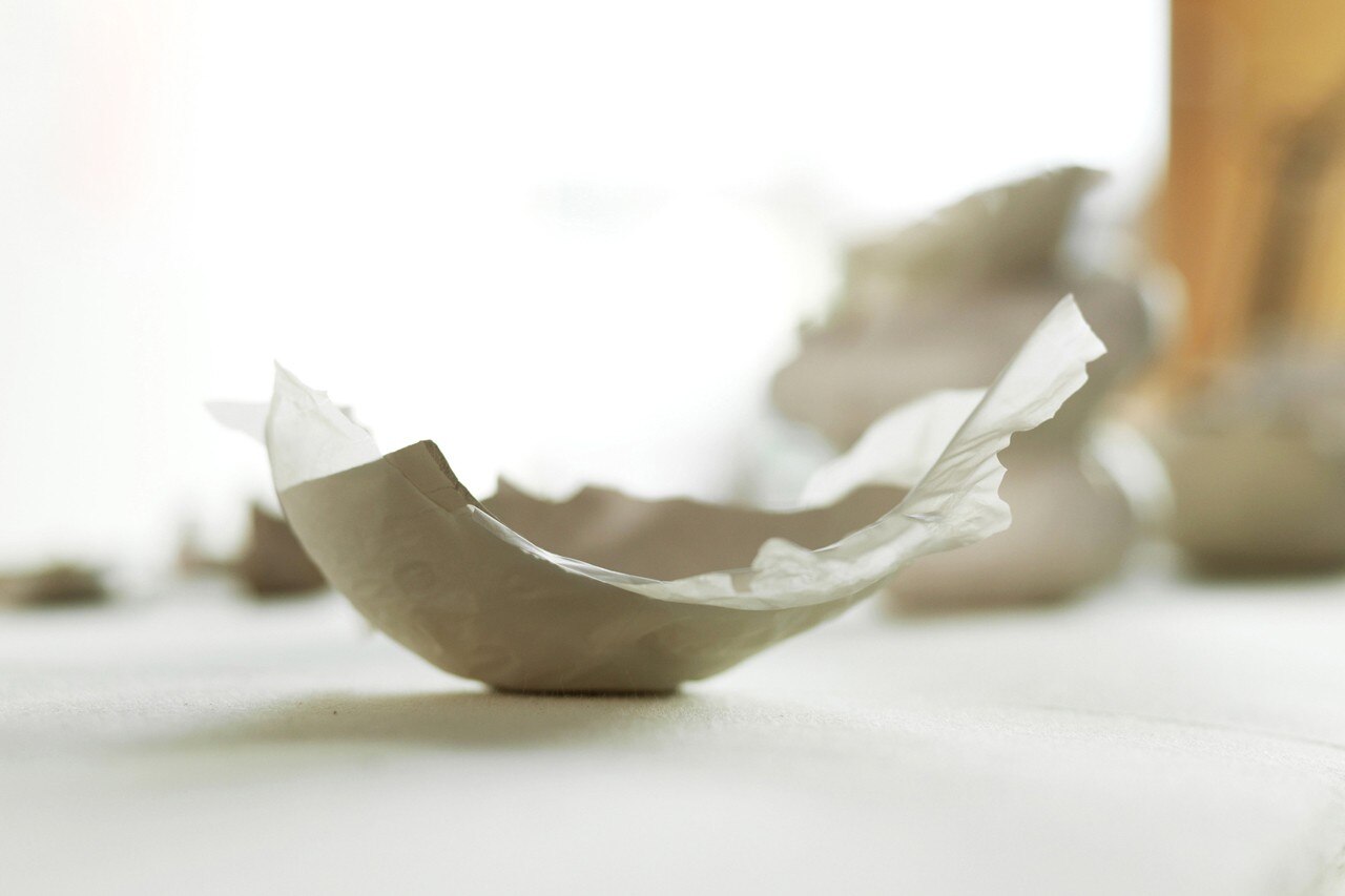 Ispirata dal processo naturale della formazione di un uovo di gallina, la designer tedesca Kaja Woelky ha sviluppato un nuovo metodo per la produzione di prodotti di porcellana.