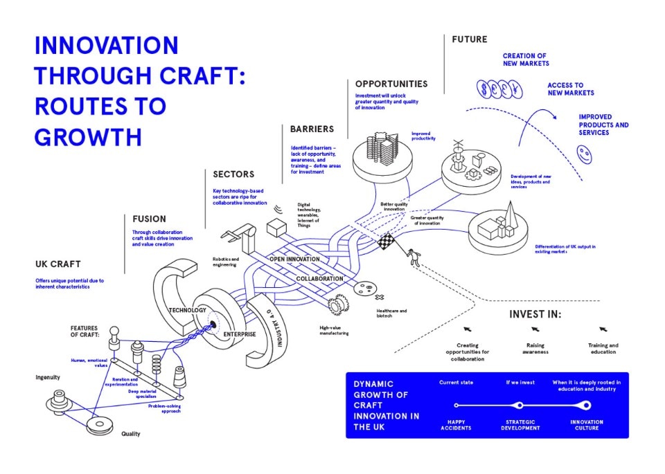 Per il Craft Council esiste una roadmap per passare dagli “happy accident” creativi a una fase di sviluppo strategico, sino a trasformare quella che lei chiama l’intelligenza della mano in una cultura dell’innovazione (che è stata oggetto di una ricerca di KPMG assieme al Craft Council stesso dal titolo Innovation through crafts: routes to growth. È evidente come in questa visione risuoni un fenomeno di contaminazione del saper fare tradizionale con il fare bottom-up e open-ended che viene dall’approccio della cultura dei maker. È un modello d’innovazione sicuramente interessante che non entra però in un confronto profondo con la complessità del solido e articolato potenziale produttivo del sistema delle imprese artigiane italiane, storicamente legate ad aree di specializzazione e capacità settoriali che sono ancora un punto di forza del sistema produttivo nazionale.