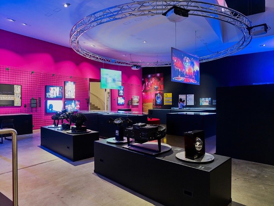 E a proposito di teatro, nella vicina Parigi, niente di meno che Roland Barthes scriveva nel 1978 di La Palace su Vogue Hommes (teatro del 1920 trasformato in nighclub da Patrick Berger) e di come gli elementi di questo fossero stati ri-funzionalizzati in relazione al nuovo utilizzo, in cui però la luce ha un ruolo ancor più fondamentale, a differenza del teatro: “Nel teatro ordinario, la luce è remota, fissata al palcoscenico. A La palace, è tutto il teatro che è il palcoscenico; qui la luce occupa uno spazio profondo, all'interno del quale prende vita e si comporta come un attore”. Secondo Roland Barthes, è proprio la luce a rendere totalizzante l’opera, ovvero il teatro. E la mostra di Vitra lo sottolinea: il design della tecnologia è fondamentale complemento estetico dei club. La luce e la musica fanno la discoteca. Ben Kelly, architetto dell’Haçienda di Manchester scrive: “Ho insistito sul fatto che il club avesse bisogno di un sistema di illuminazione flessibile, come in un teatro. Volevo che lo spazio fosse teatrale, non solo sul palcoscenico (proprio come disse Barthes, ndr) quindi se qualcuno avesse voluto appendere una mezza dozzina di pecore morte con un moschettone, avrebbe potuto ”. Si diceva, in mostra anche la tecnologia dunque: Regno Quattro Luci, disco light Astrodisco di Clay Paky del 1982, il proiettore Astroraggi del 1983, un classico delle discoteche, Atlas del 1987.