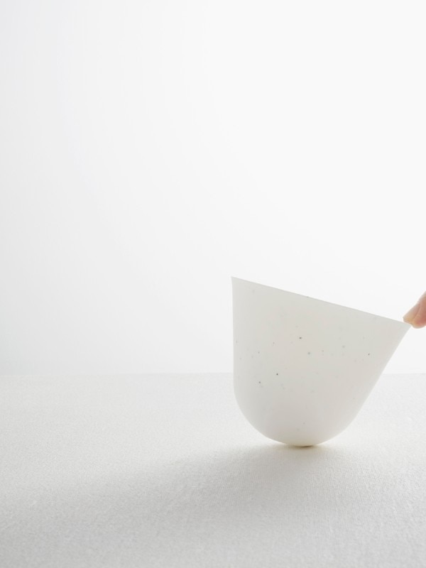 Le porcellane ricordano la fragilità di guscio d’uovo, mentre i vetri, leggeri e sottili simulano una continuità con il liquido inafferrabile che contengono. Una serie di forme archetipiche ed eteree che, per loro natura grazie alle sottili tensioni create tra forma e materia, scaturiscono gesti e azioni delicate.