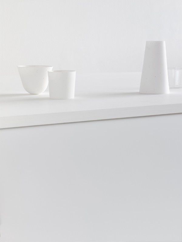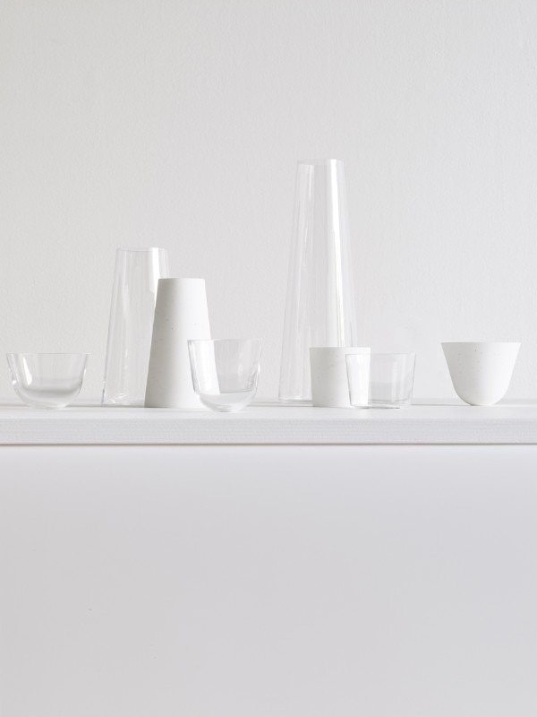 La collezione Vessels, che già dal nome esplicitano la loro funzione, è composta da un insieme di bicchieri, tazze e caraffe realizzate in vetro e porcellana bianca. Quella di Studio Vit è una sfida nei confronti dei materiali, più che nella ricerca della forma, infatti lo spessore di questa collezione di piccoli vasi è sottilissimo.