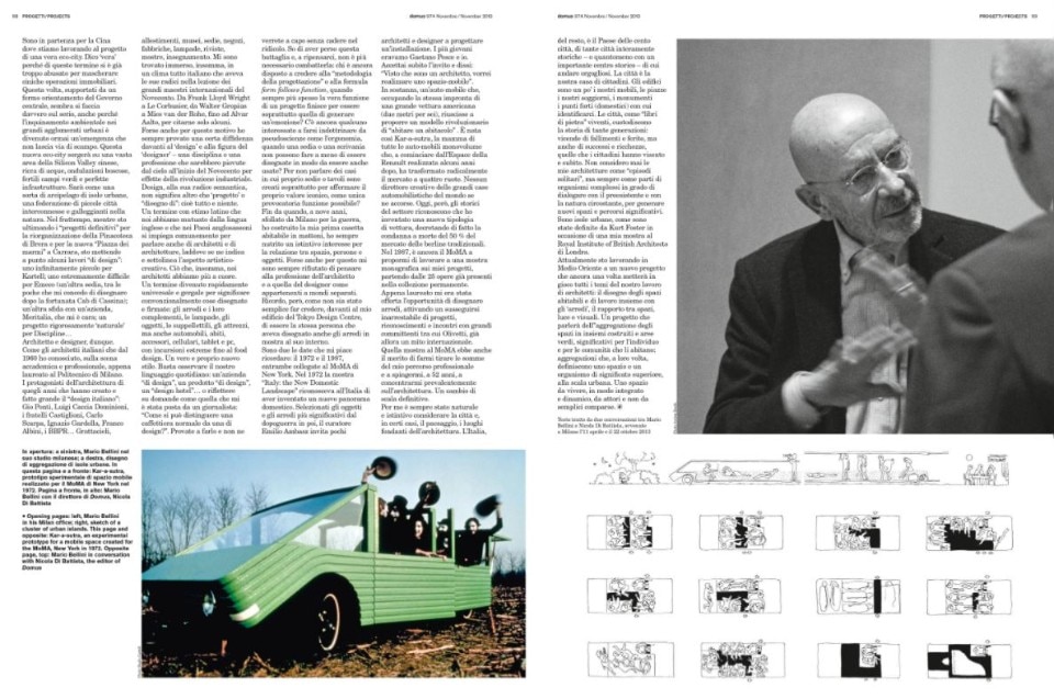 Mario Bellini lavora invece sull’abitacolo dell’automobile, con l’intento di valorizzarlo in quanto luogo di relazione: il prototipo della sua Kar-a-sutra esposto al MoMA non solo libera l’abitacolo dell’auto dal vincolo delle posizioni fisse e prestabilite, ma inaugura una linea progettuale che anticipa di parecchi anni il design delle mono volume.