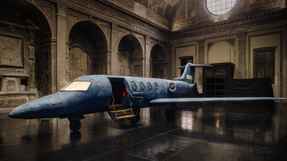 Penso di far parte di quello stesso sistema che però al contempo io critico. Così ho detto che volevo un jet privato, come simbolo del lusso e del consumismo in contrasto con questi materiali riciclati, un paradosso. E loro hanno avuto il coraggio di lasciarmelo fare.