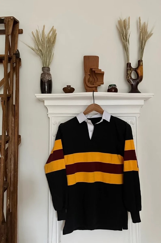 Negli ultimi due decenni, mentre sul campo da gioco le maglie da rugby si sono evolute sempre più, nelle strade il vecchio modello in cotone si è imposto come cardine della moda per il tempo libero. Merito del design essenziale unito alla ricchezza delle combinazioni cromatiche – quasi tutte a righe orizzontali, ma anche a quarti o patchwork.