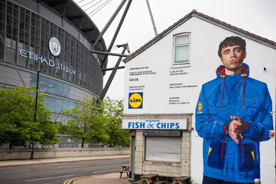Con lo scatto della campagna, Stone Island ci ha fatto anche un murale sulla facciata di un fish and chips in New Ashton Road, strada nel cuore della Manchester sponda City, a pochi passi dall’Ethiad Stadium.