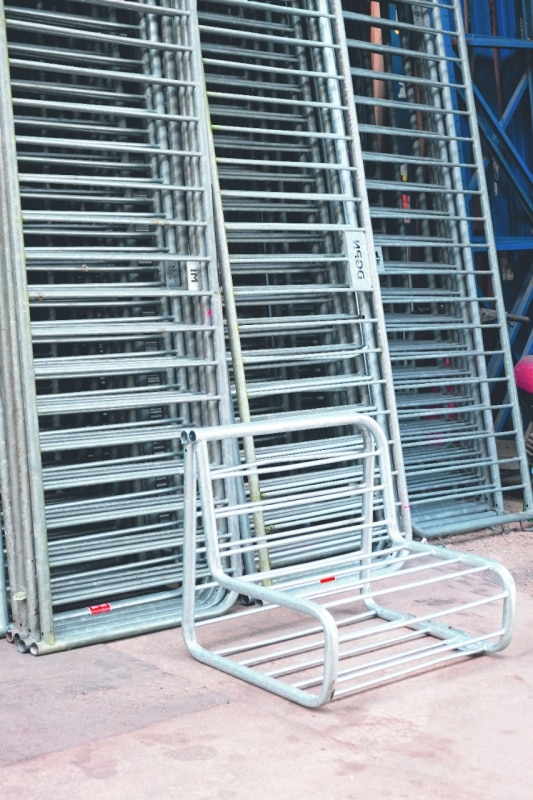 Per la struttura di Bultan abbiamo recuperato le transenne stradali di metallo usate dalla Questura di Parigi. (...) Bastano poche curvature per trasformare una barrière Vauban nello scheletro del divano.