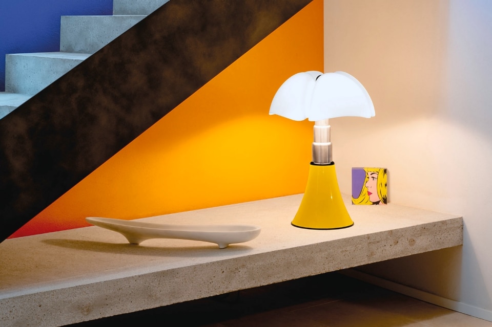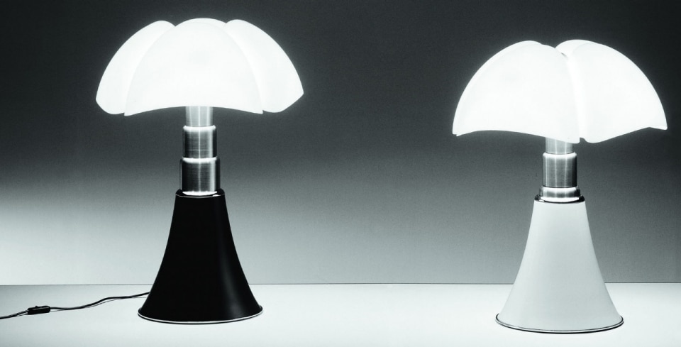 Il progetto rimase per un anno nei cassetti di Martinelli: il fusto telescopico era complesso da ingegnerizzare, il diffusore dalle falde sinuose risultava quasi impossibile da stampare. Ma quella difficoltà, quella irriducibilità, era già parte dell’identità della lampada. Ogni elemento era nuovo, non riconducibile a nessun modello preesistente. Per questo la Pipistrello appare ancora oggi come una modernità “diversa”: non allineata, laterale, sorprendente.