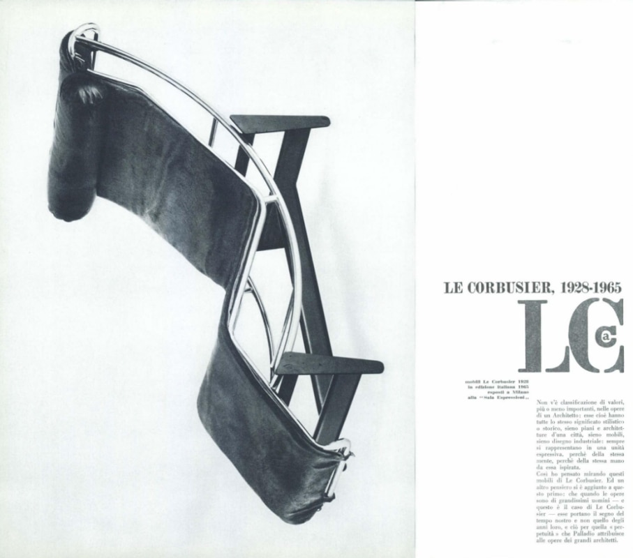 Nel libretto Cassina dello stesso anno, Ernesto Nathan Rogers offre forse la definizione più acuta del fenomeno: “Gli oggetti diventano antichi quando hanno superato di essere vecchi… e ridiventano patrimonio attuale. Le Corbusier è sempre moderno perché ogni suo oggetto, pur esprimendo il tempo in cui è concepito, lo travalica fino a diventare patrimonio universale.” (E.N. Rogers, Cassina, 1965).