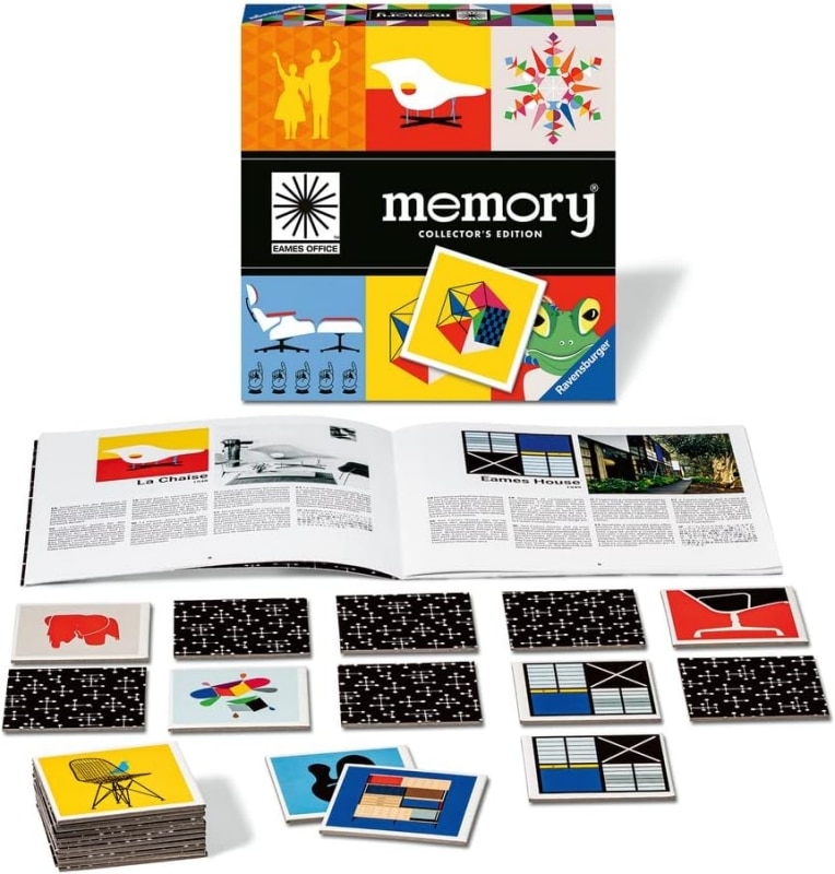 Non serve essere preparati sugli Eames per giocare a questa versione del celebre Memory, ma se siete curiosi, è quello che fa per voi. In questa edizione proposta da Ravensburger le figure omaggiano il lavoro della coppia americana che a metà secolo ridefinì le forme dell’arredamento.