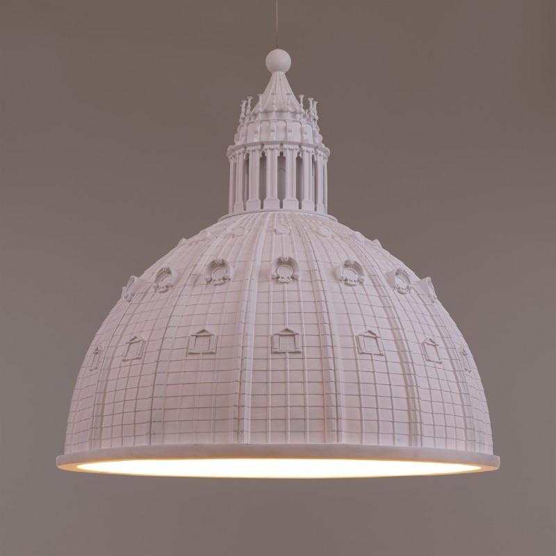 Dopo gli alfabeti luminosi e le Monkey, Mouse e Mushroom Lamps disegnate da Marcantonio, Seletti punta ancora sull’illuminazione con un soggetto meno profano: la Cupola di San Pietro. Cupolone è una lampada a sospensione in resina disponibile in due varianti di colore, una bianca e l’altra antracite e dorata, realizzata dallo studio AMeBE di Alessandra Mantovani e Eleonora Barbareschi, già protagoniste dell’ultima Milano Design Week con la sedia “Superufficio” ispirata a Gio Ponti.