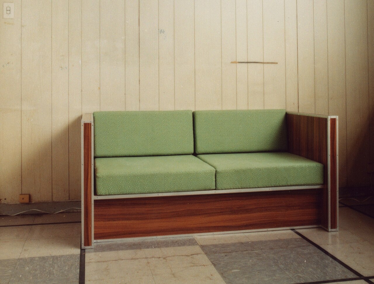 Green River Project, Rail Car Laminate Loveseat w Green Vinyl, 2018