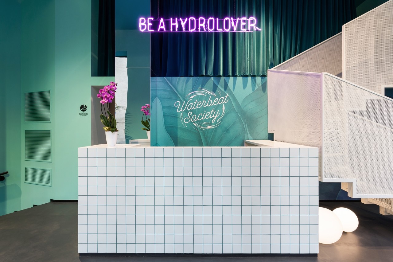 Un centro di hydrospinning che sembra più un locale alla moda, con carte da parati a foglie, piastrelle quadrate bianche e scritte al neon color orchidea. Si trova a Milano, pochi metri dietro il Duomo, ed è stato progettato da Nomade, studio d’architettura e interior design fondato nel 2010 da Selina Bertola.