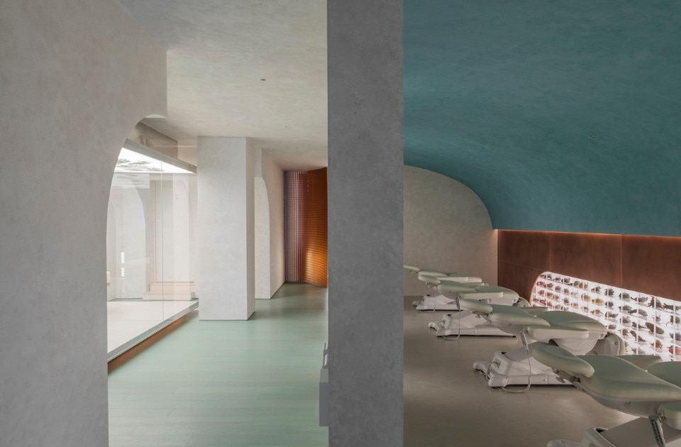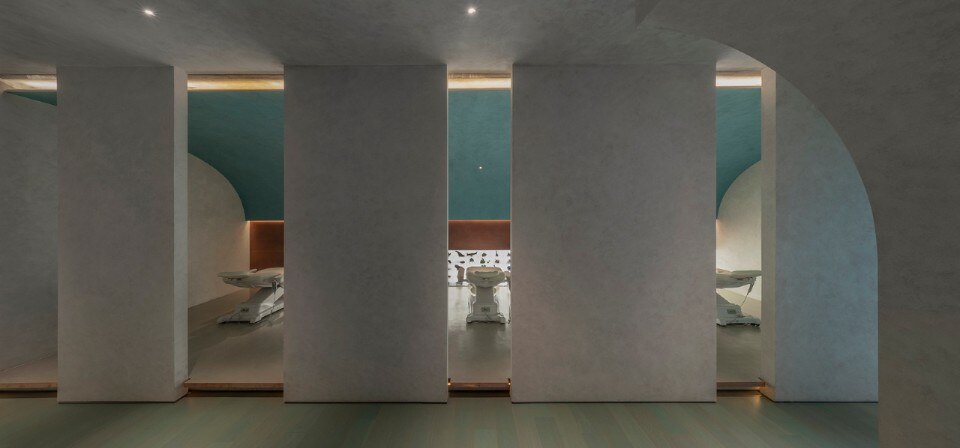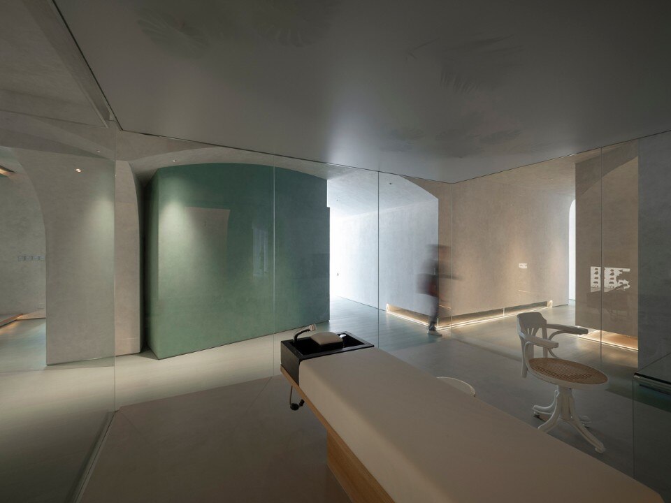 Il centro dedicato alla cura della persona disegnata da Waterfrom Design, trasporta il cliente attraverso un percorso sensoriale fatto di archi, piante, minerali, luci soffuse e silenzio.