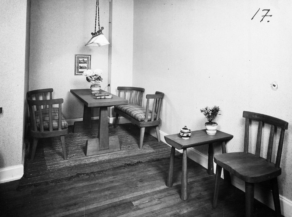 Come materiale principale scelse il pino grezzo, che non doveva essere molto diffuso nelle case della società più erudita, e si predispose a progettare gli elementi-base dell’arredo domestico: sedie, tavoli, letti e armadi, con una deliberata violazione del gusto dominante in fatto di eleganza. Senza dubbio, doveva avere calcolato che i clienti della Nordiska Kompaniet avrebbero, tutto sommato, apprezzato un cambiamento di atmosfera.